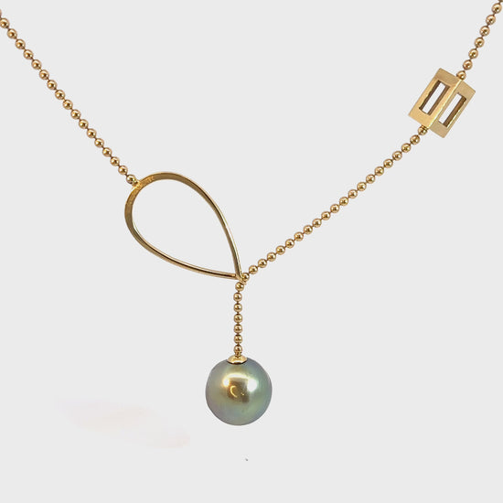 Vintage 18k Yellow Gold Pearl Lariat Necklace