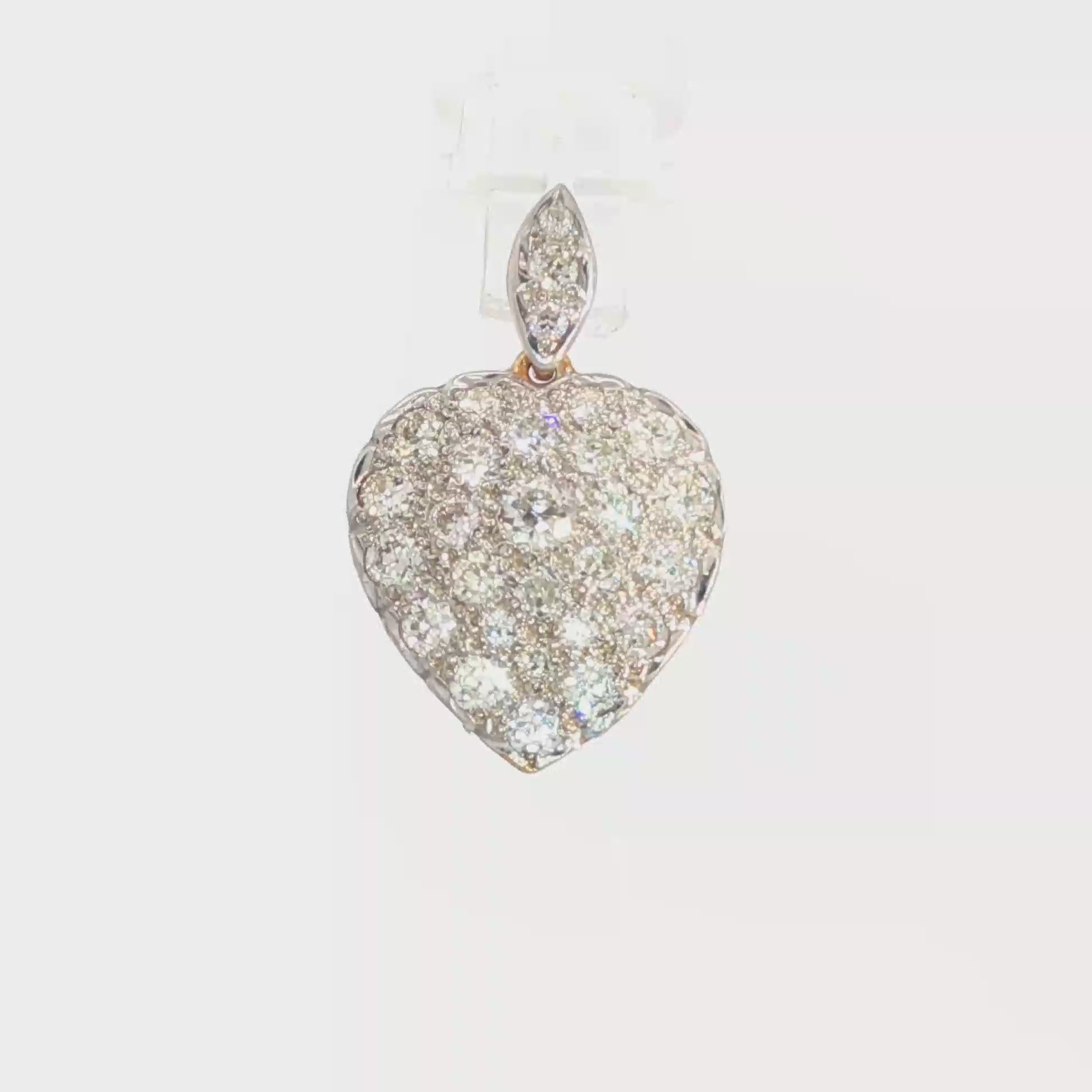 This isn’t a flimsy little heart. The heart measures 19 x 17 mm with the bail. The pendant is 26.5 mm total length.. It is beautiful and ithas spread. It has intention. Diamond after diamond, no dead space, no soft spots — just clean fire across silver topped gold. Topped off with the original diamond bail and sweet open heart back.