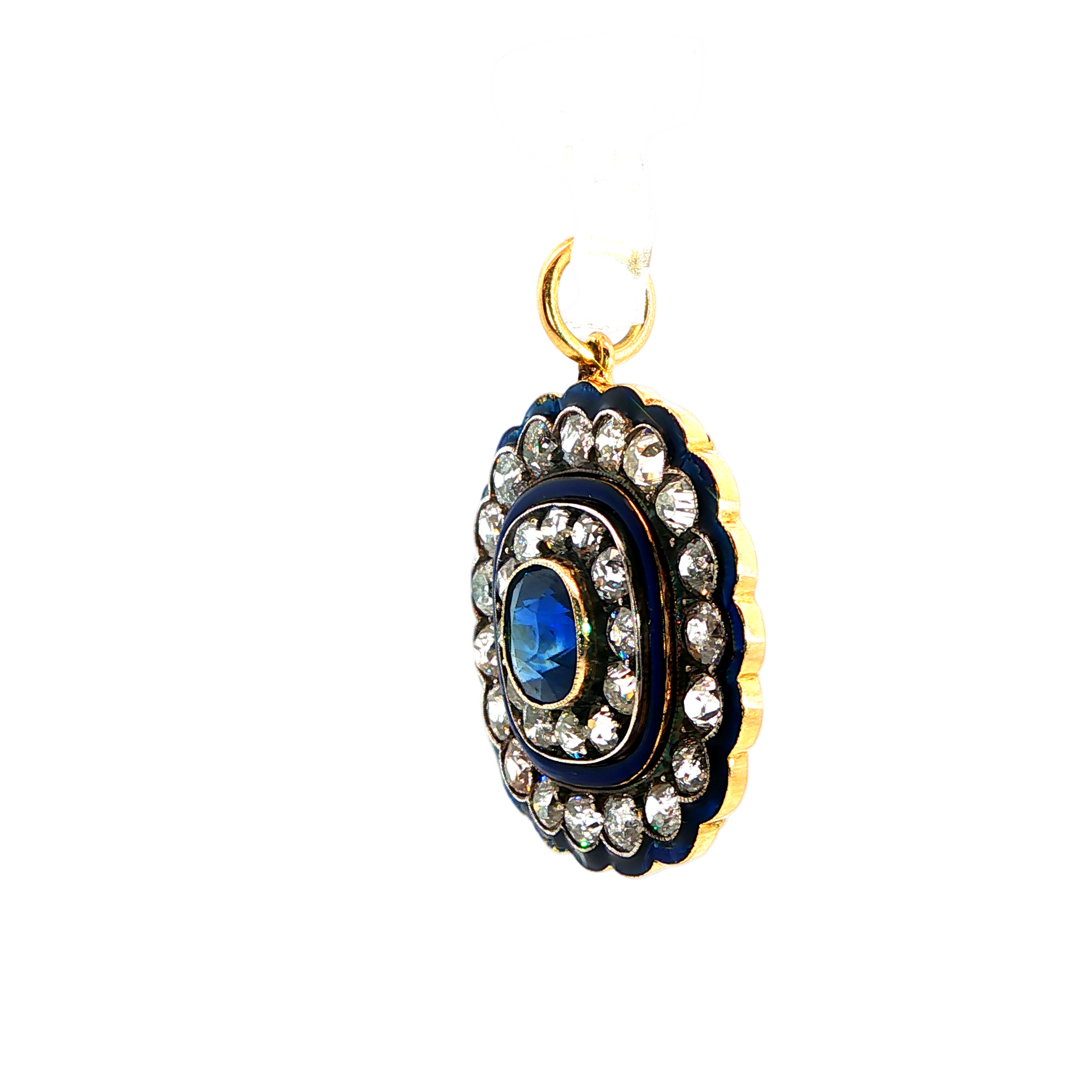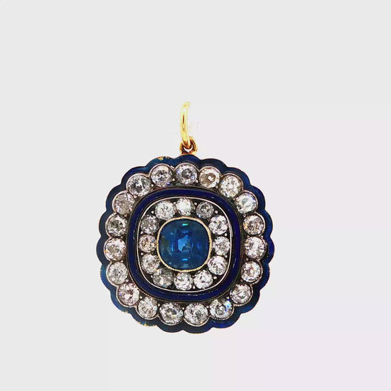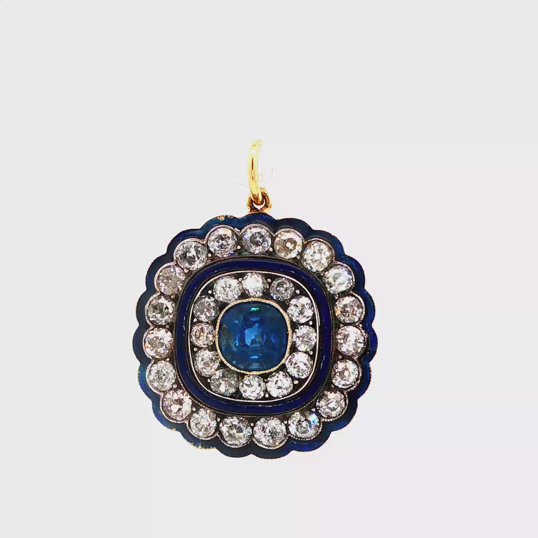 This exceptional Art Deco cluster pendant combines the refined geometry of the 1920s with the rarity of an unheated sapphire center. The approximately 2.5 ct sapphire displays rich natural color, untouched by heat treatment a highly sought-after characteristic among collectors.