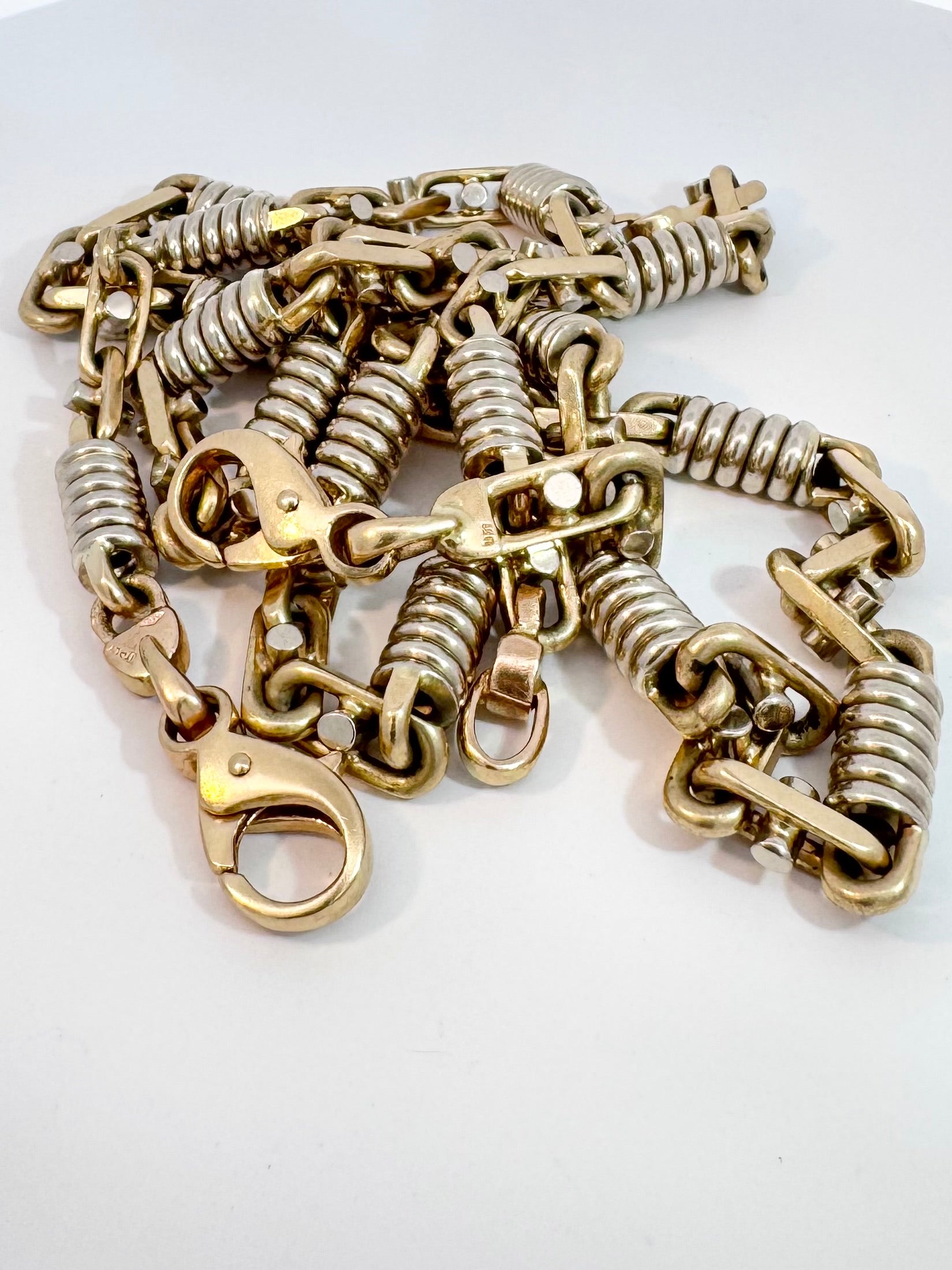 Vintage 14k Two-Tone Gold Industrial Chain and Bracelet Set