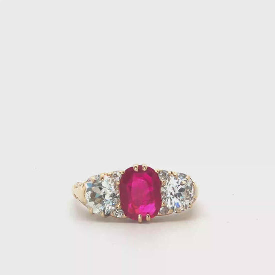 Victorian Burmese Ruby and Diamond Three Stone Ring
