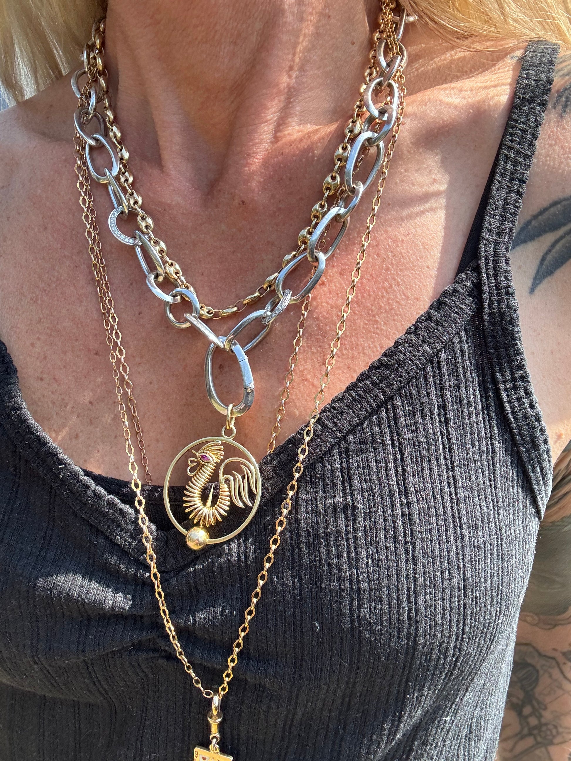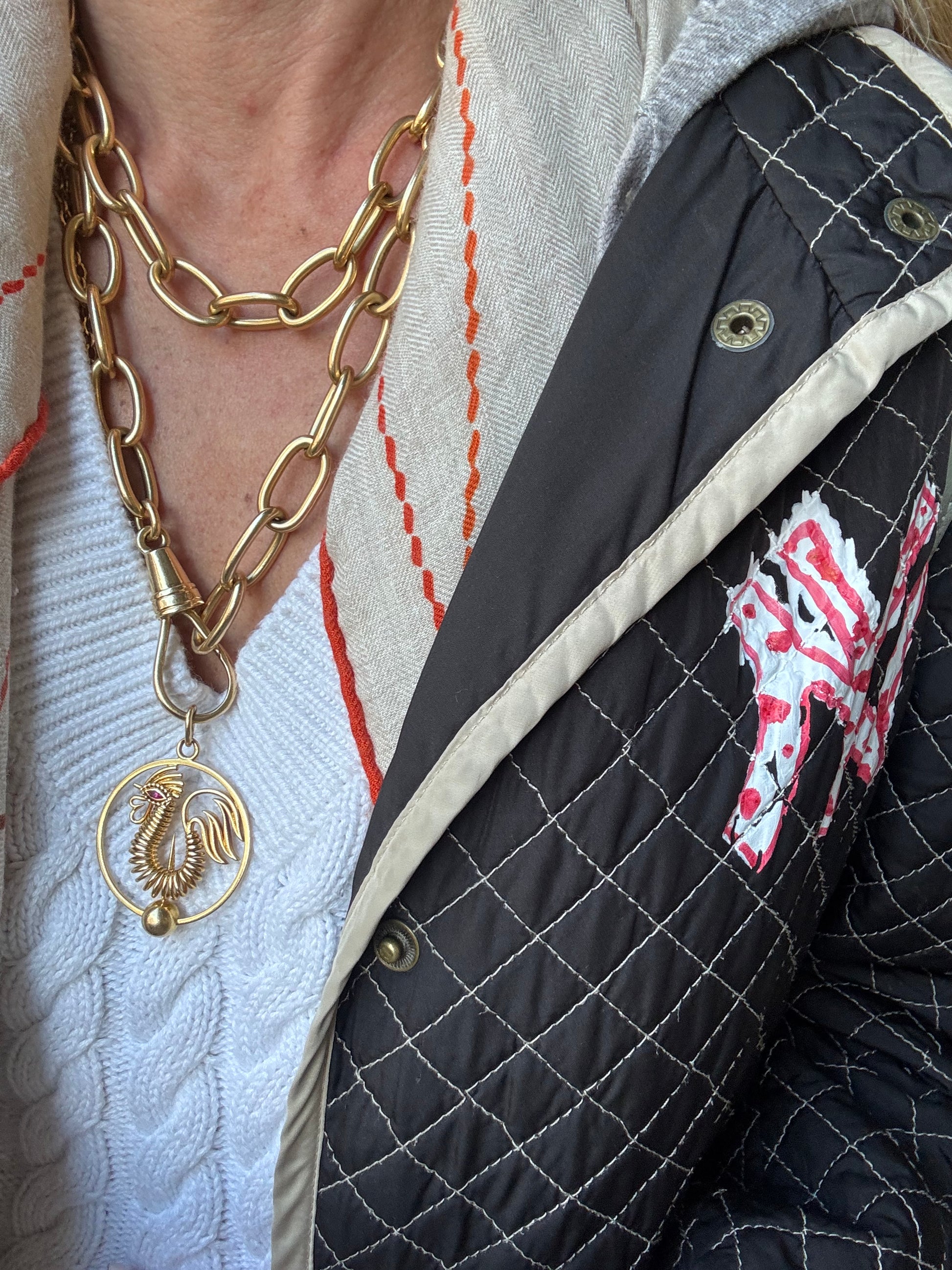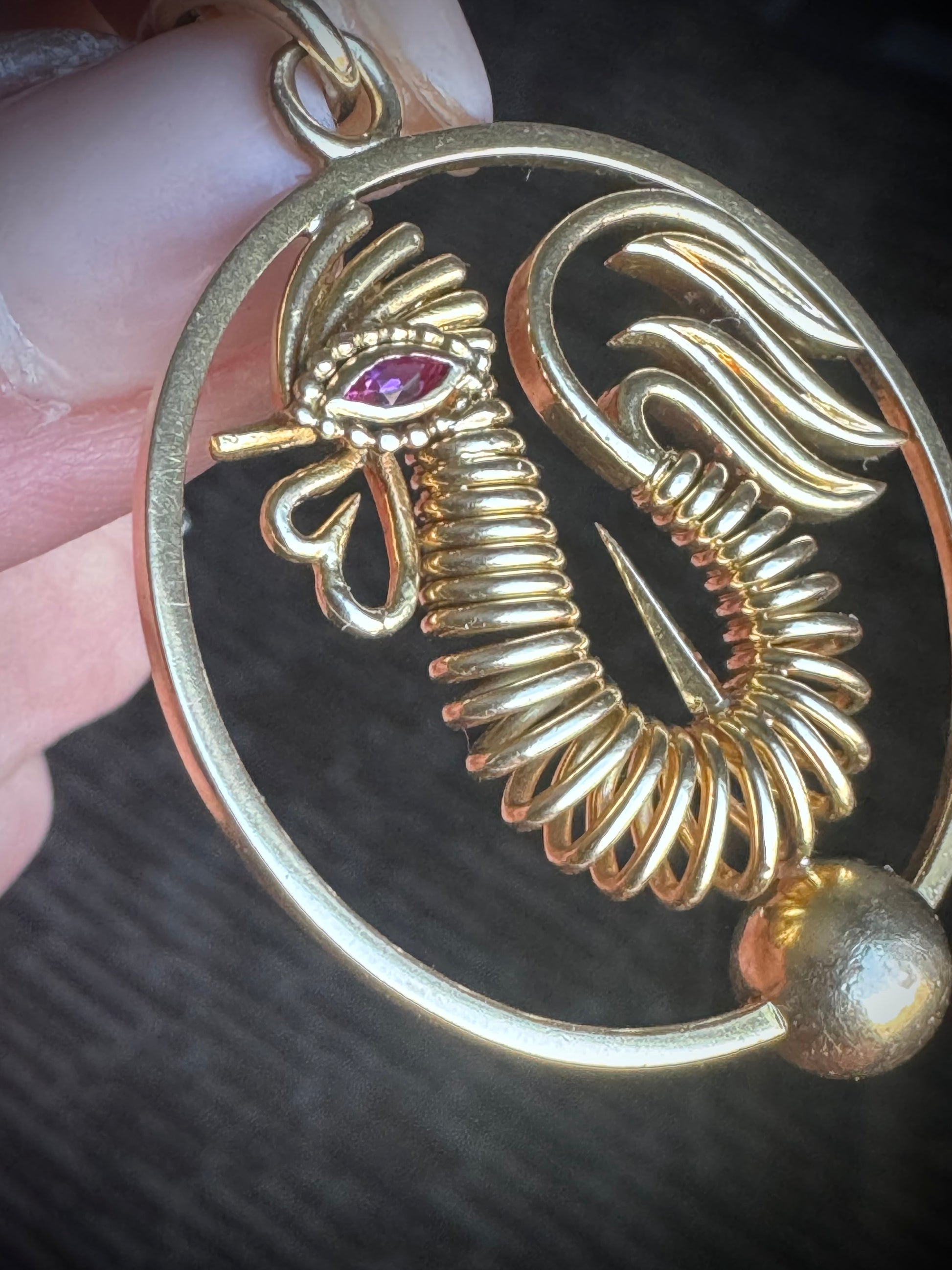 He’s a beauty and a badass — all confidence, all Cartier. Perfectly crafted in 18k yellow gold with a bright ruby eye, his stance pure French swagger. The round pendant measures 38mm (excluding the large bail), with that bold, architectural edge that defined Cartier’s 1970s era — clean lines, heavy gold, and unmistakable luxury.