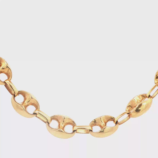Vintage XL mariner chain, circa 1970s–1980s, crafted in semi-solid 18k yellow gold and tipping the scale at 93.2 grams. A long, draped 31.5 inches with a substantial 13mm width — thick walls, oversized links, and that unmistakable old-school hit only vintage gold delivers.
